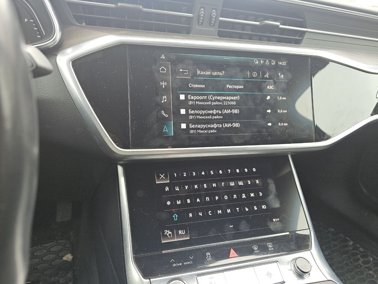 Audi A6 C8 2018 года оснащен блоком мультимедиа MIB2 Premium с поддержкой штатной навигации и выводом ее на цифровую приборную панель. Была выполнена полная русификация данного автомобиля, прибывшего к нам из США: