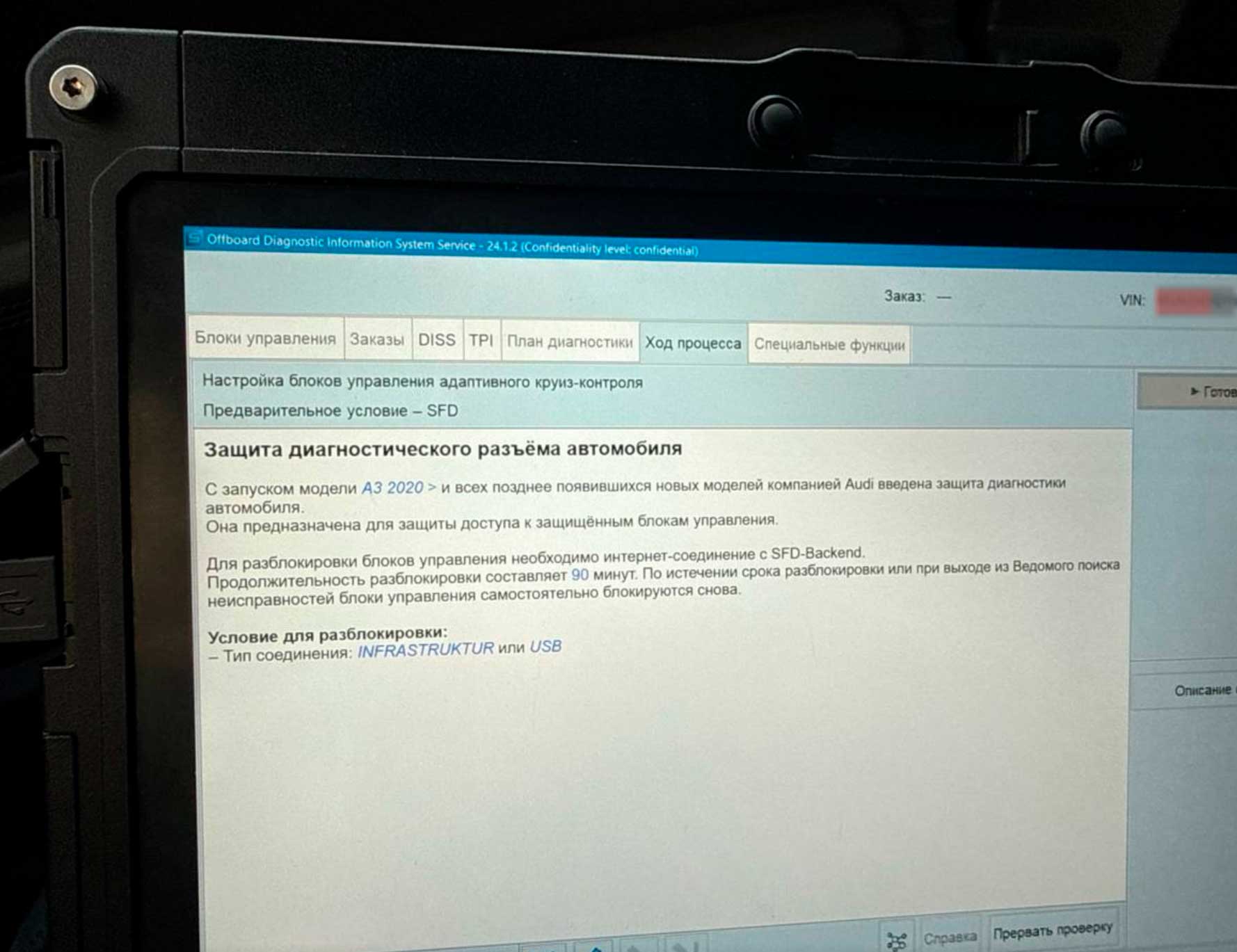 Пока блок не привязан, мы видим статические ошибки, неработающий Audi Pre Sense:
